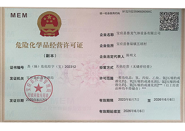 經(jīng)營許可范圍:一般危化品 (充裝):氬[壓縮的或液化的]、氧[壓縮的或液化的]、氮[壓縮的或液化的]、二氧化碳[壓縮的或液化的]一般;罚罕椤⒁胰病⒑壓縮的或液化的]、